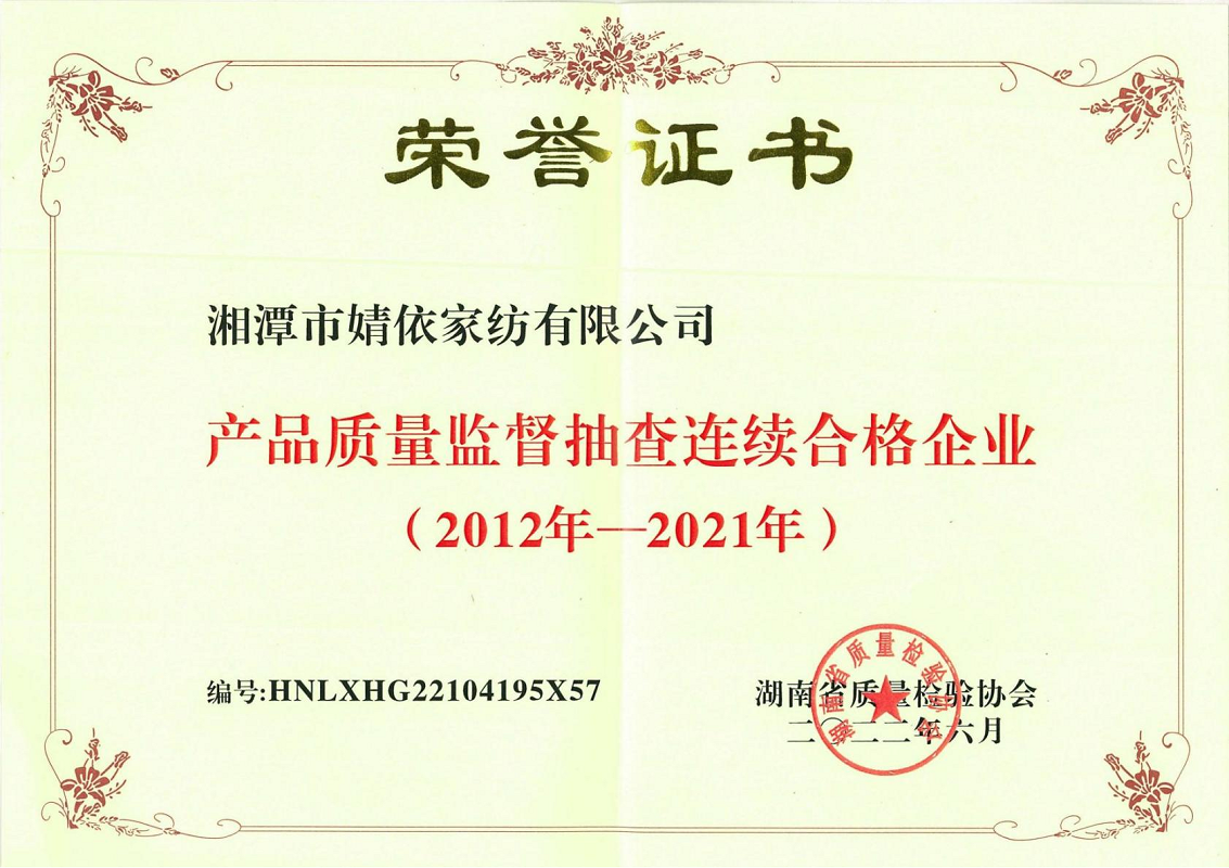 產(chǎn)品質(zhì)量監(jiān)督抽查連續(xù)10年合格企業(yè)